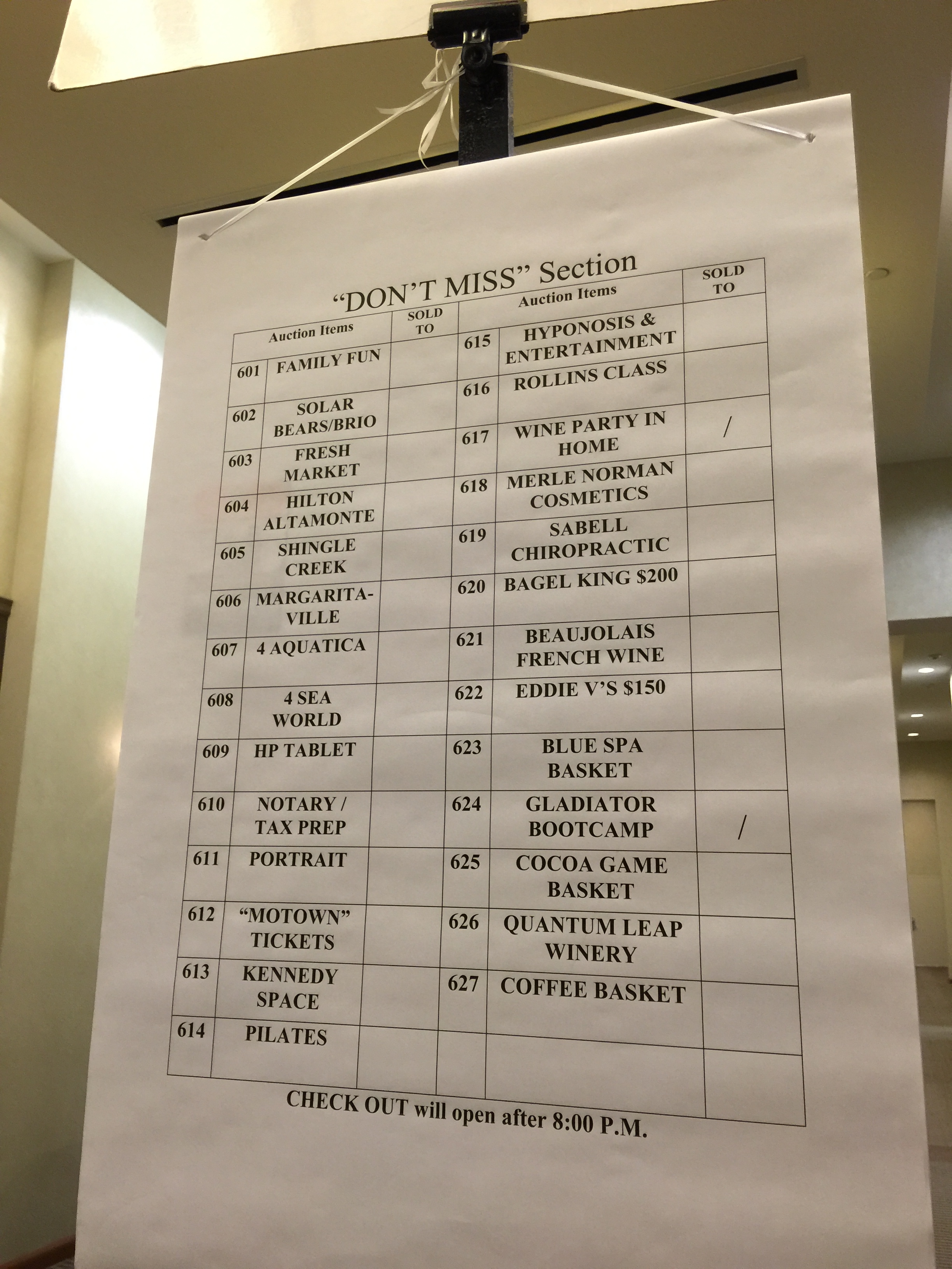 Make it easy for people to spend money by hanging a poster listing this silent auction section’s items in order