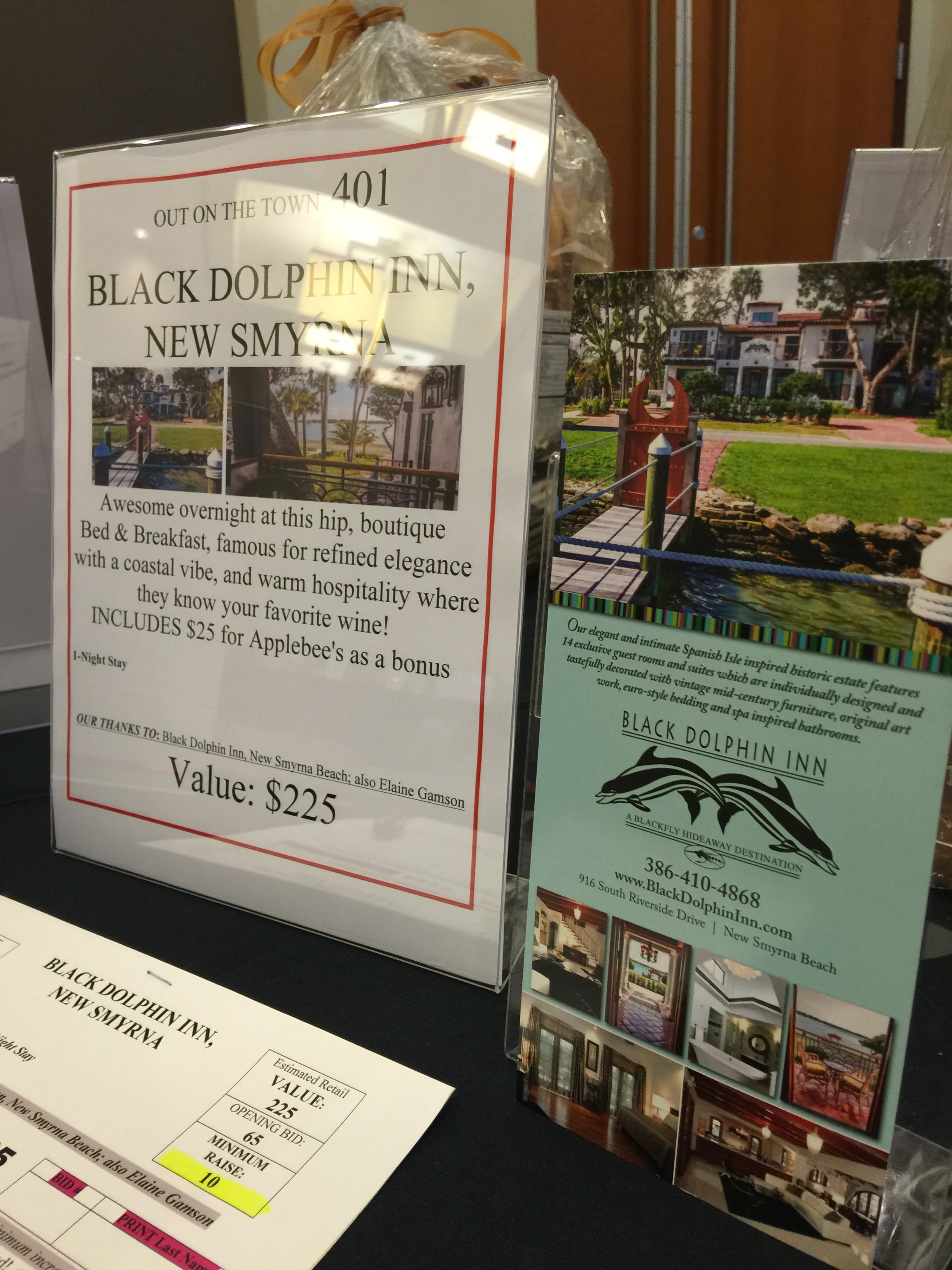 In order to make it easy for people to spend money (one of my mantras), make sure promotional items that would help potential bidders understand an item, see the value, or get excited are put on display next to the bid sheet. Either stuff into a clear plexi sign holder, or, for small items, I lean them against a 4″ x 6″ plexi.