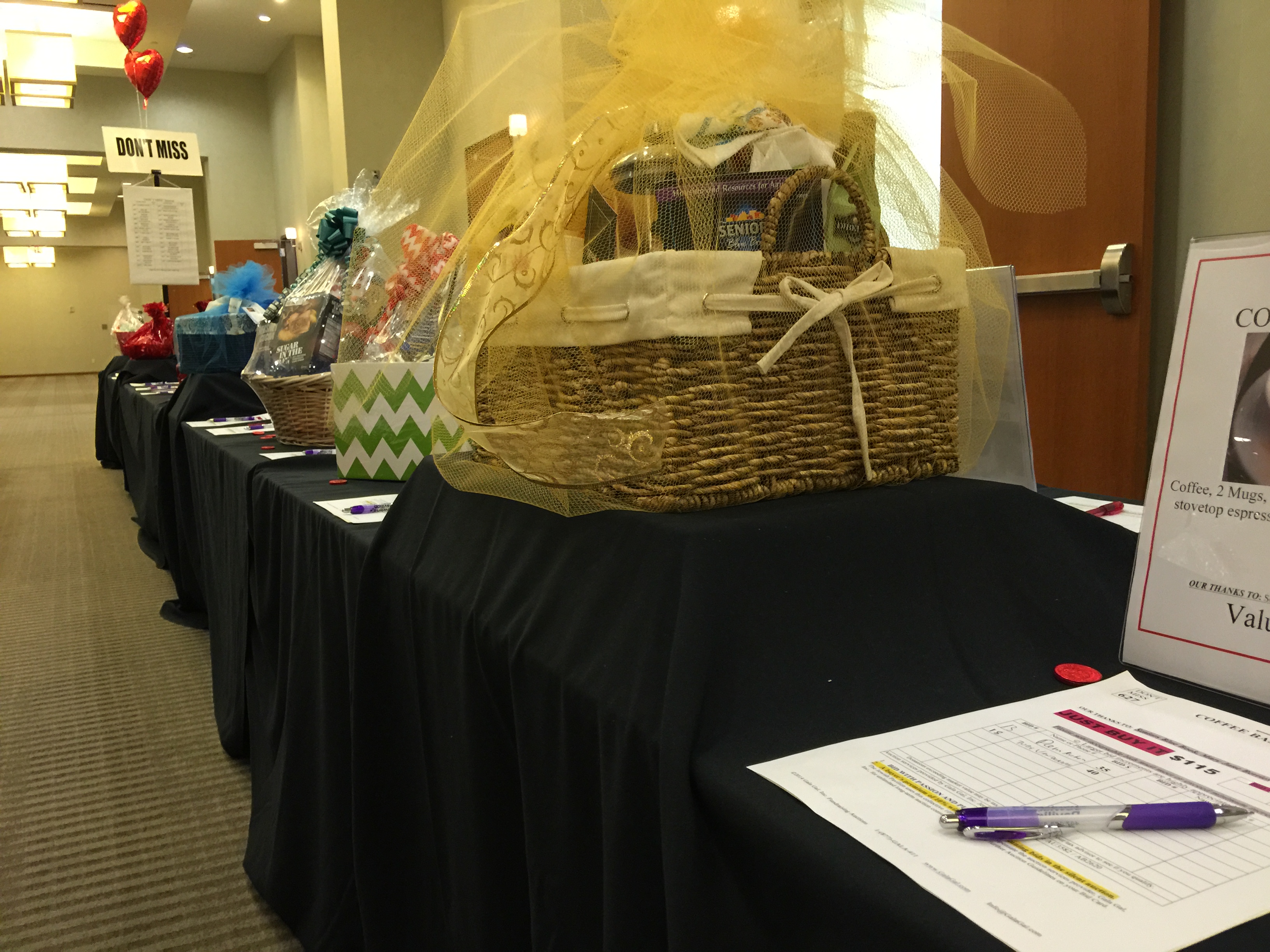 I think the easiest way to add levels to a silent auction is by gift-wrapping empty cardboard boxes. Gather 1 box for every 4-6 silent auction items, anywhere from an 8″ high to 24″ high, and wrap them in whatever colors or prints match your theme. I get inexpensive paper from Dollar Tree or Michael’s. These boxes can be wrapped weeks in advance and transported to the venue easily in garbage bags. Or if you have a ton of volunteers for day-of auction set up, boxes can be wrapped on site. Sometimes volunteers are standing around looking for a job to do.